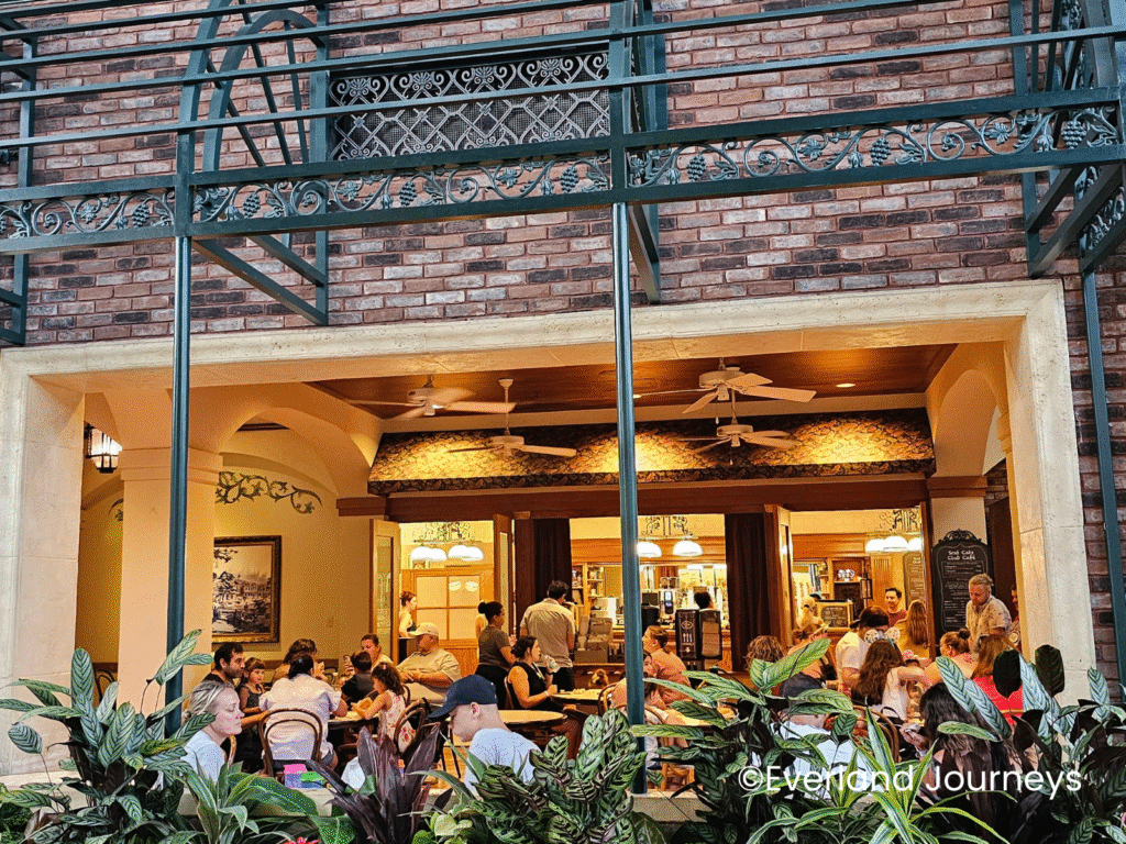 Being the first Disney Vacation Club to be built, we feel the layout of the hospitality house area left a lot to be desired. The dining was not great–Olivia’s is just okay. The quick service counter outside has a limited menu, and there is no indoor seating for quick service. Just a few picnic tables with umbrellas.