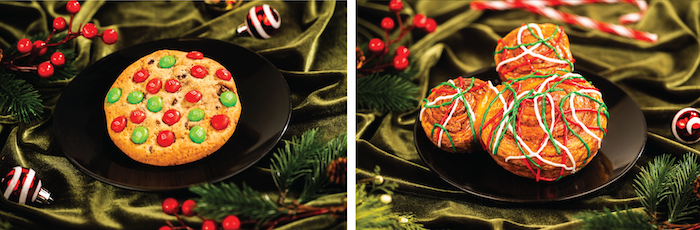 - Chocolate Chunk Cookie: Chocolate chunk cookie made with M&M’S Milk Chocolate Candies Winter Blend, chocolate chunks, and sea salt (New)