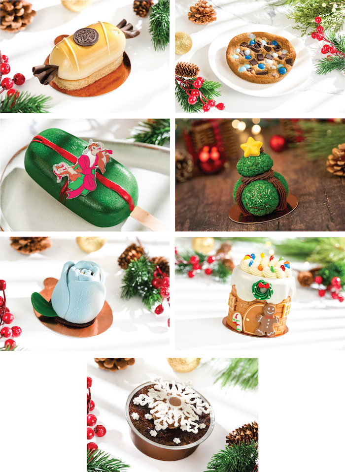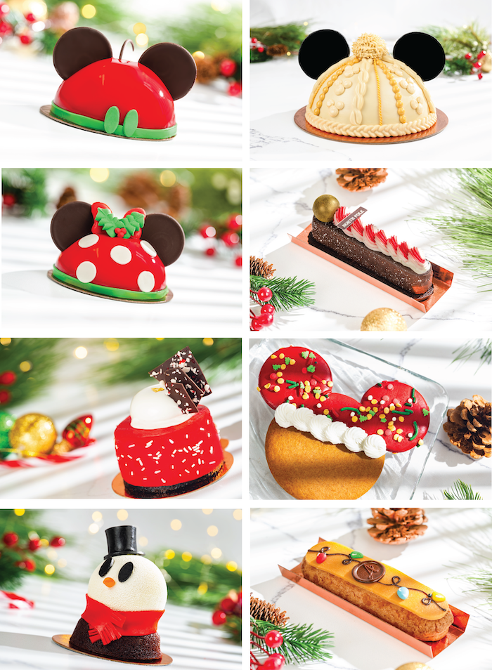 - Mickey Sweater Hat Dome Cake: Gingerbread chiffon, marshmallow mousse, milk chocolate mousse, and salted caramel crispy pearls (New)