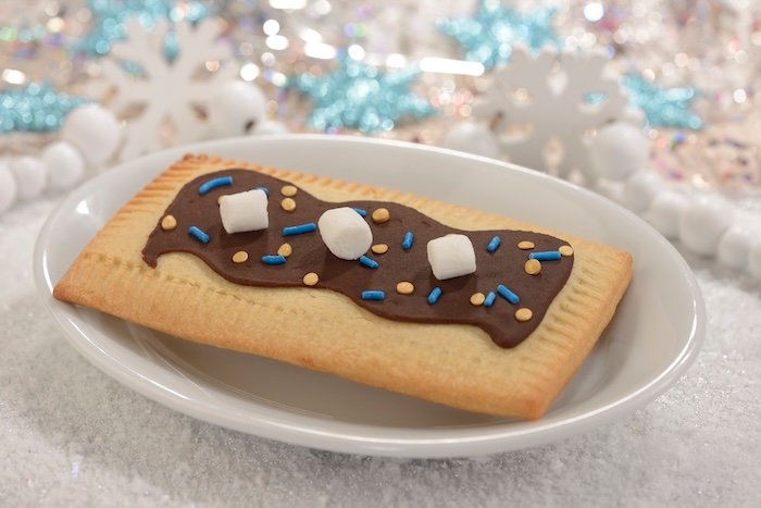 - Hot Cocoa Lunch Box Tart: Chocolate fudge filling, hot cocoa-marshmallow fondant, and mini marshmallows