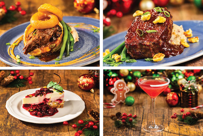 - Holiday Beef Pot Roast: Served in a puff pastry crust with mashed potatoes, beer-battered onion rings, and black garlic-truffle aïoli (New)