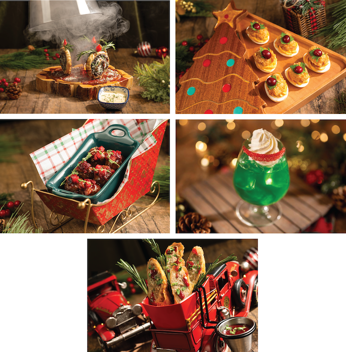 - Boughs of Holly Deviled Eggs: Deviled eggs with sweet potato filling, fried chicken, herbed butter, cranberry, and parsley (New)